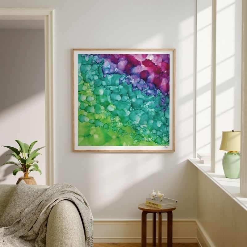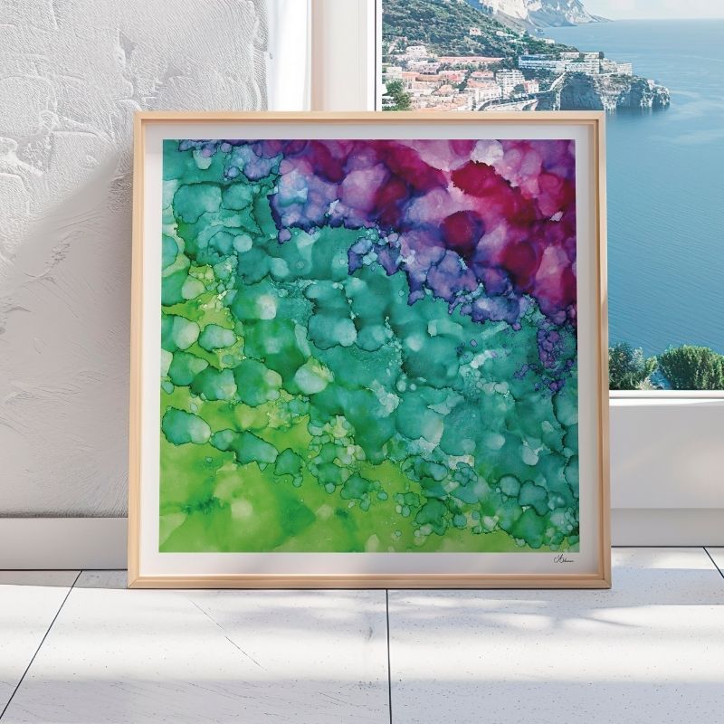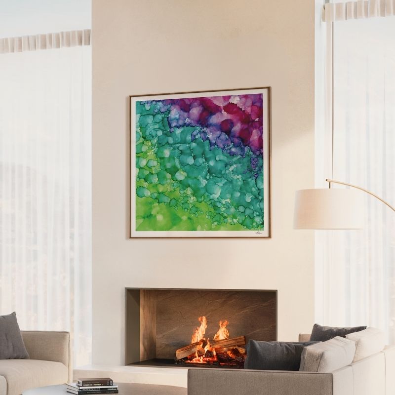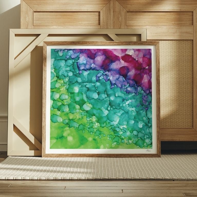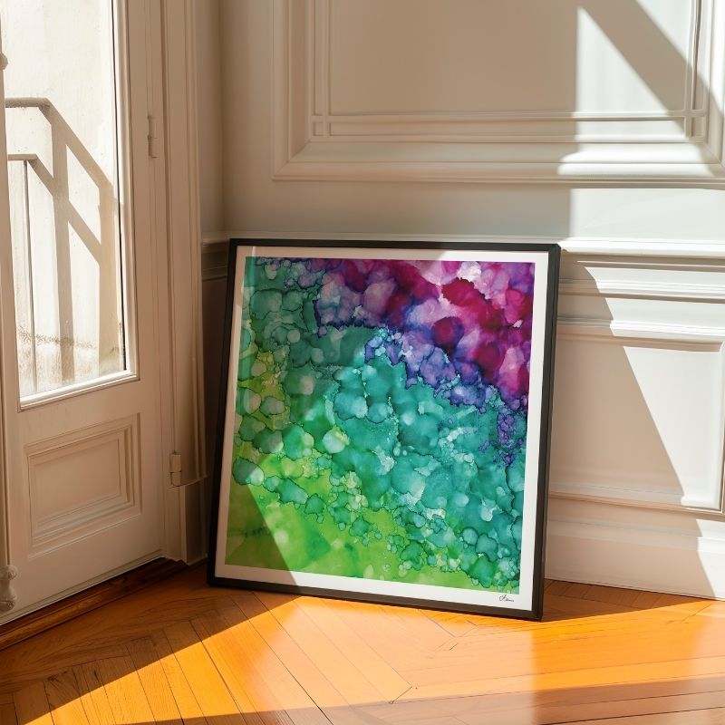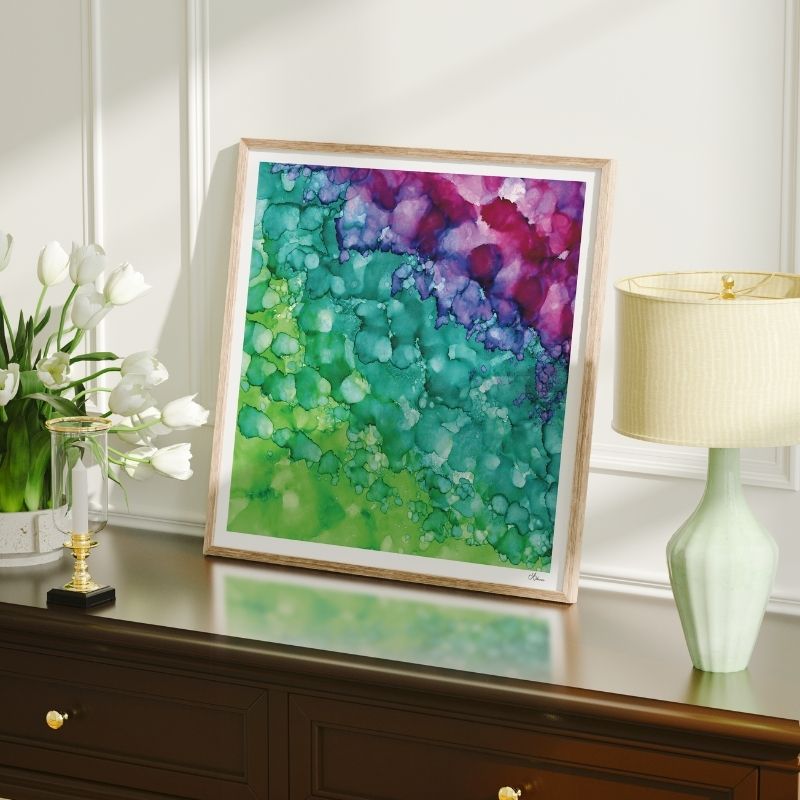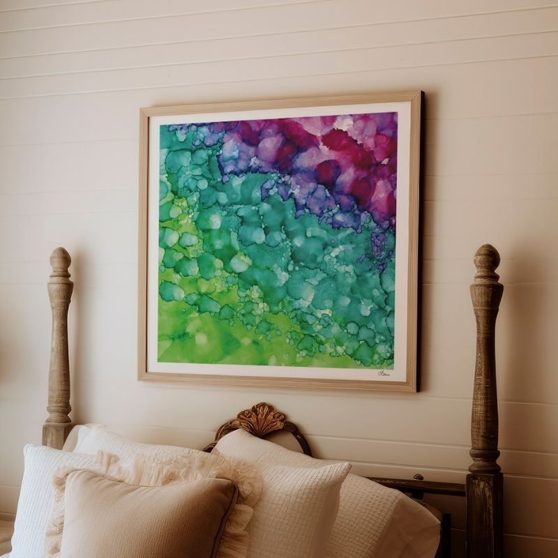 Spring Renewal blooms with the refreshing essence of early spring, capturing the promise that follows a gentle rain. Soft shades of green, turquoise, and subtle purples evoke rejuvenation and new beginnings. Perfect for brightening your space with nature’s tranquility, this artwork encourages you to pause, breathe, and welcome fresh energy into your day.